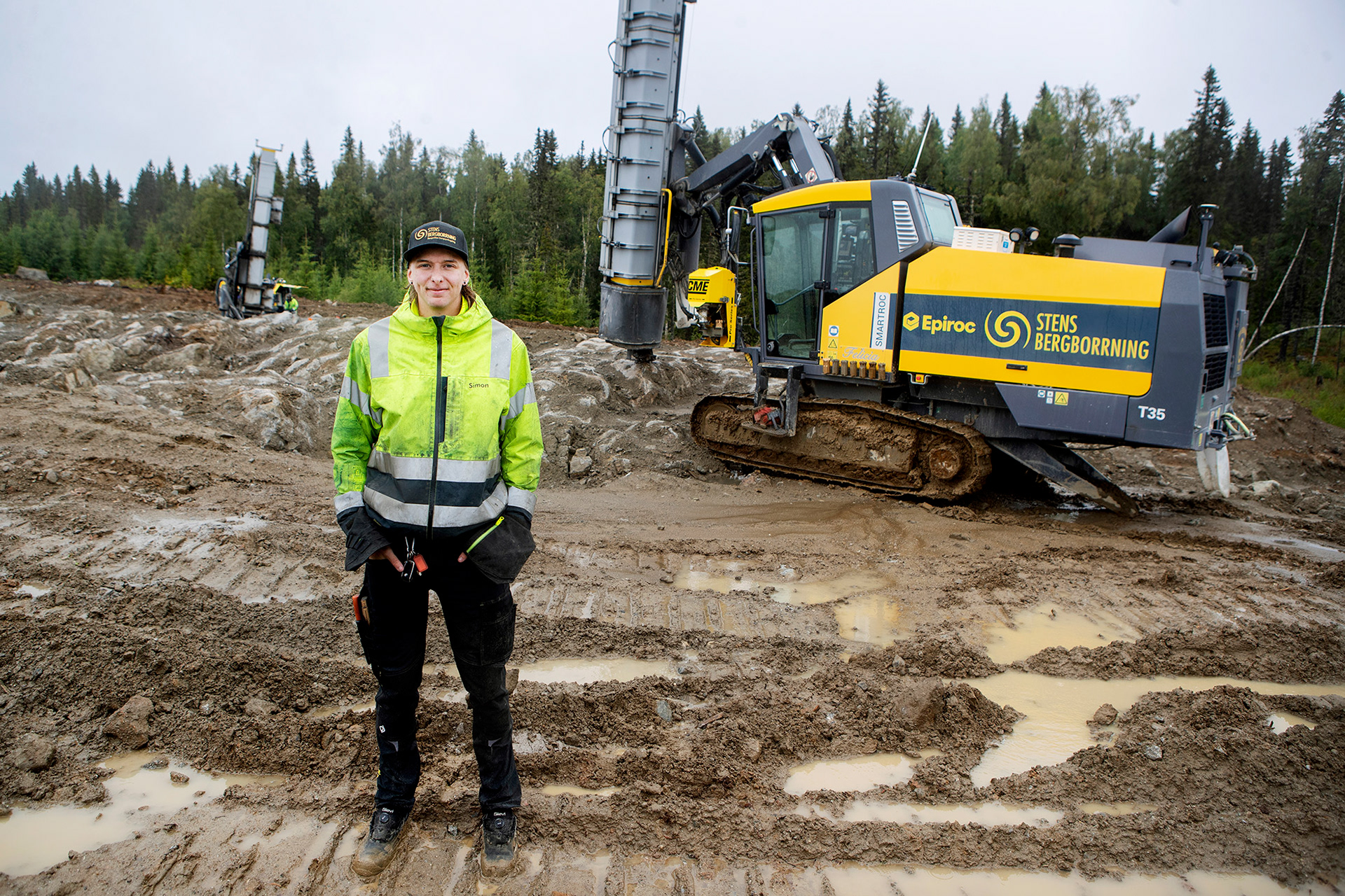 Victor Åkesson, bergsborrare förklarar för sin bror Simon hurman borrar med öronen.